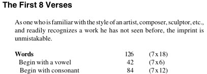 that add up to multiples of seven and other types of amazing, beyond imagination, and glorifying patterns to God's Glory! This author has a book that quotes form Ivan's work, and other books on this science called Bible Numerics.