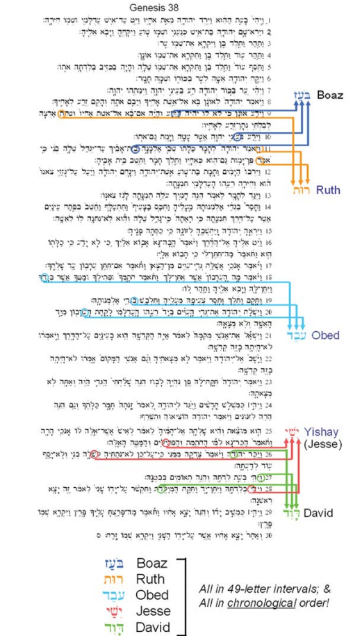 In Genesis 38, in 49 letter increments the lineage of King David from Boas listed out in chronological order. The Book of Ruth gives the Story of Boaz seeing Ruth and becoming her kinsmen Redeemer. From this author's understanding, Martin Luther wanted to have the Book of Ruth thrown out of the Bible because God is not mentioned in it. There are actually several inscriptions in the Book of Ruth and this is one of the most profound.