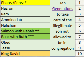 | Deuteronomy 23:2 | A bastard shall not enter into the congregation of the Lord, even to his tenth generation shall he not enter into the congregation of the Lord. |