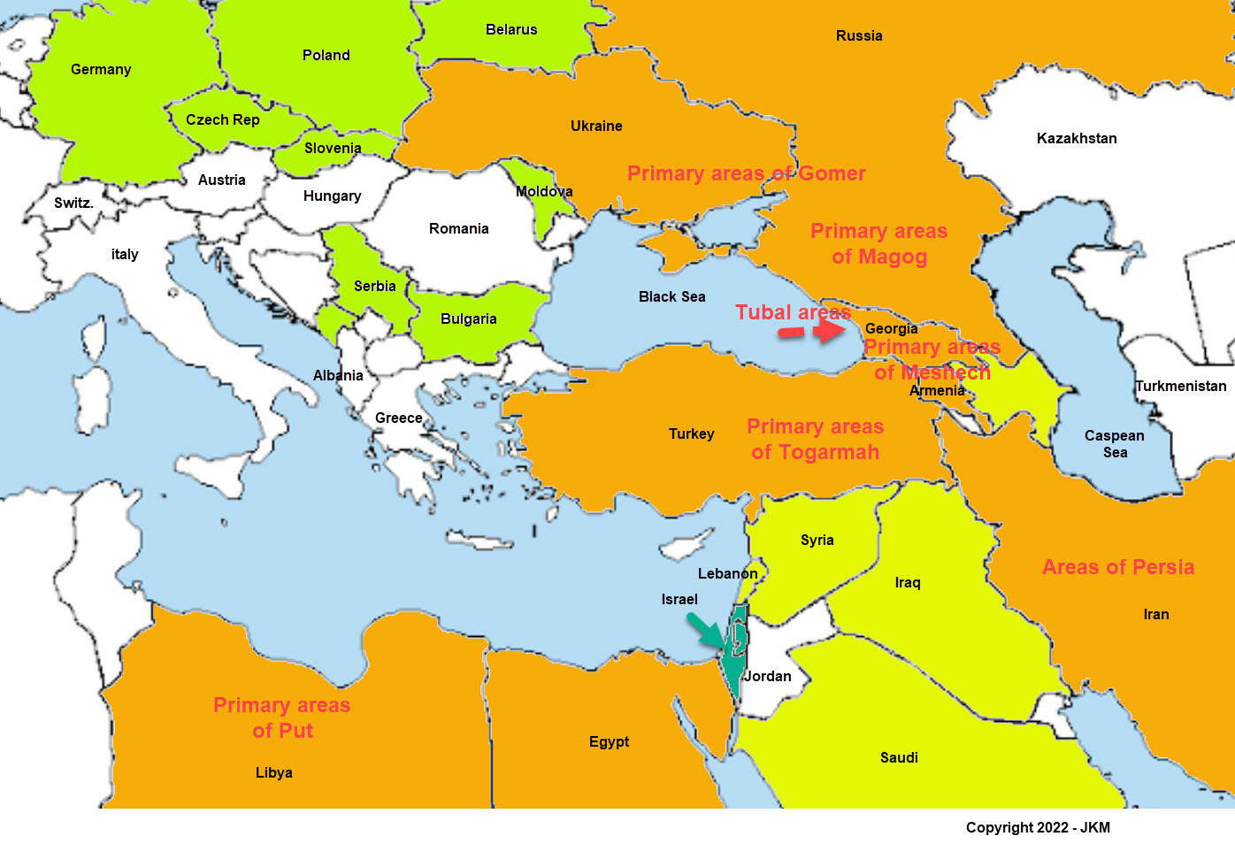 | 2 | Meshech / Rosh / Ros | Georgian and Armenians areas below modern-day Russia. | ||||