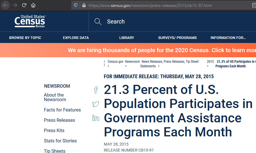 1. The United States is a greedy nation, yet an estimated 21.3% of the population in 2015 are subsidized by the government in one substantial form or another.